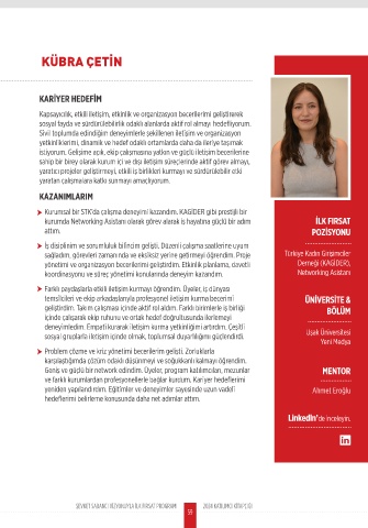 ve farklı kurumlardan profesyonellerle bağlar kurdum. Kariyer hedeflerimi