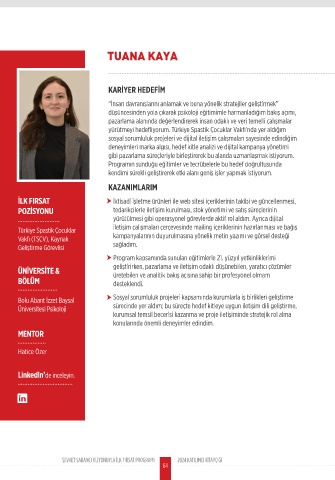 Programın sunduğu eğitimler ve tecrübelerle bu hedef doğrultusunda