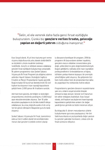 ŞEVKET SABANCI VİZYONUYLA İLK FIRSAT PROGRAMI 9. DÖNEM KATILIMCI KİTAPÇIĞI