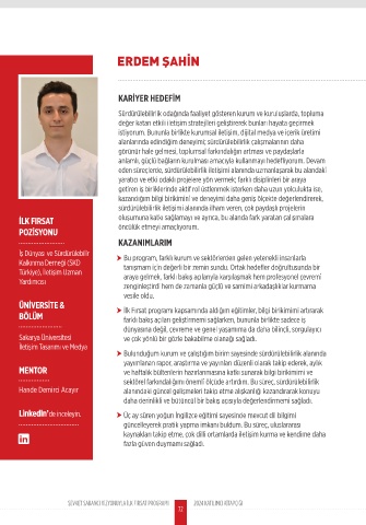 eden süreçlerde, sürdürülebilirlik iletişimi alanında uzmanlaşarak bu alandaki