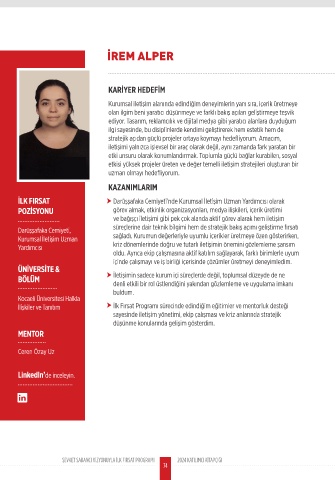 İlişkiler ve Tanıtım İlk Fırsat Programı sürecinde edindiğim eğitimler ve mentorluk desteği